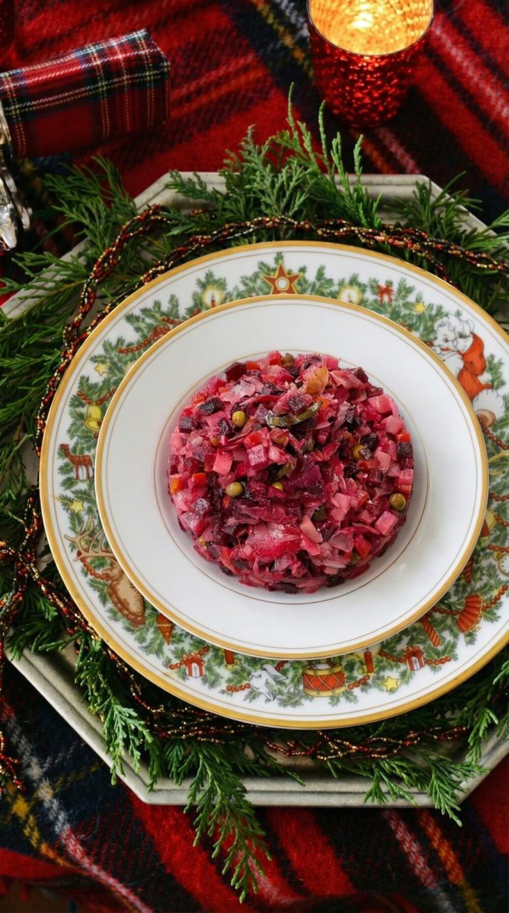 Картофель отварной , морковь отварная ,свекла отварная, лук репчатый свежий, горошек консервированный, огурец соленый, капуста квашеная .