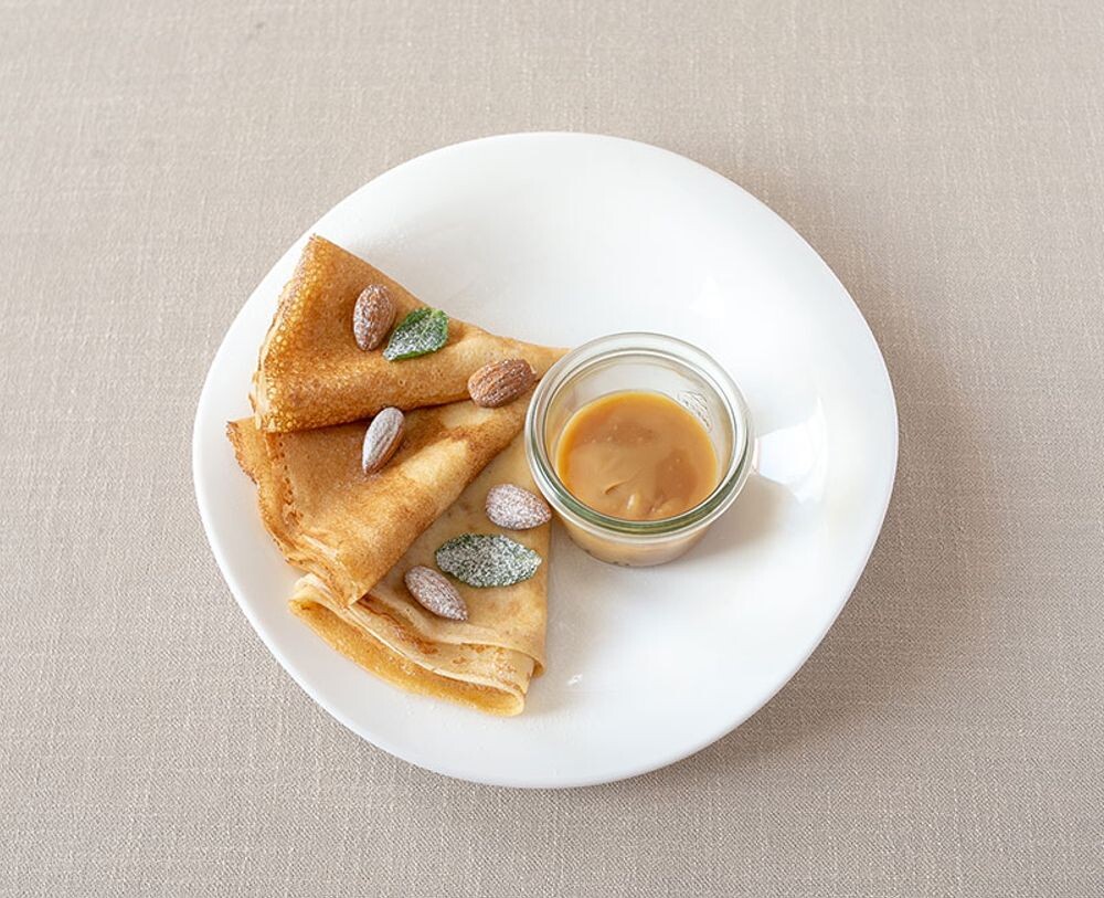 Блины с карамельным соусом и миндальным орехом