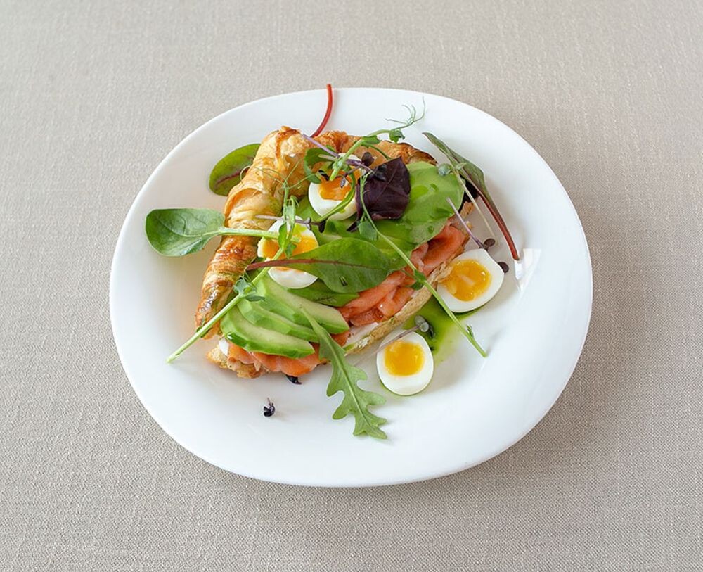 Круассан с малосольной семгой и авокадо