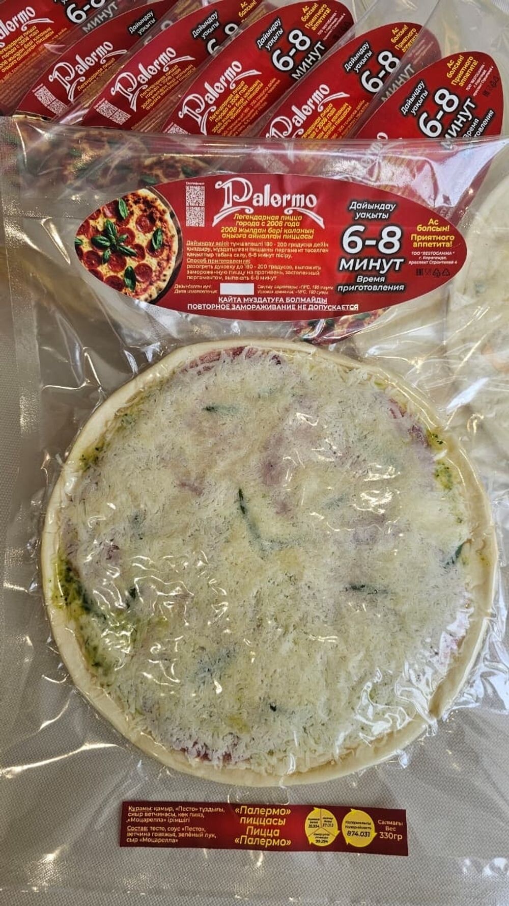 Фирменная пицца 24 см с ярким вкусом: соус песто, моцарелла и сочная говяжья ветчина. Удобно хранить, быстро готовится, подходит для дома и HoReCa.