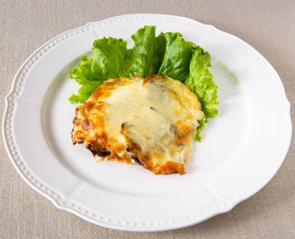Обжаренные говяжья вырезка, куриное филе, говяжий язык с майонезным соусом и чесноком, запеченная под сыром Моцарелла