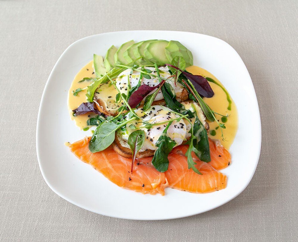 Яйца Бенедикт со слабосоленой семгой и авокадо