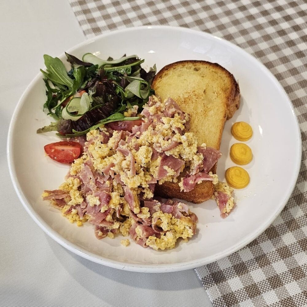 Бриошь скрембл с ветчиной