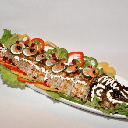 Обжаренные баклажаны, соус кунжутный, творожный сыр. Доставка банкетных блюд по предварительному заказу