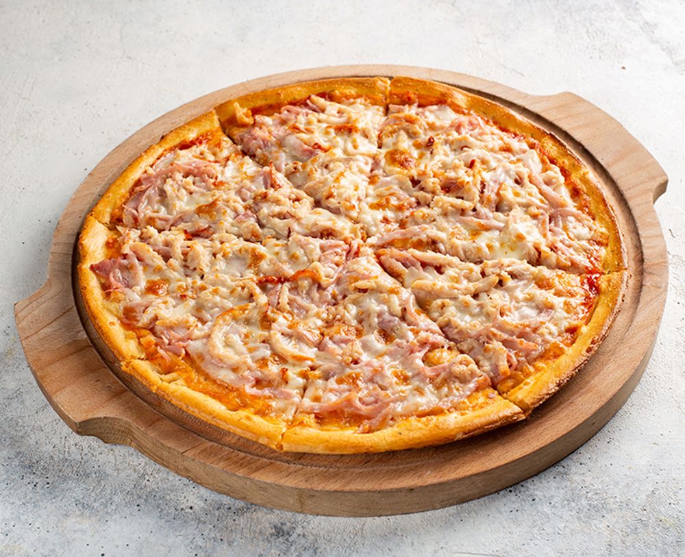 Соус барбекю, курица копчёная, бекон, ветчина, сыр "Моцарелла"
