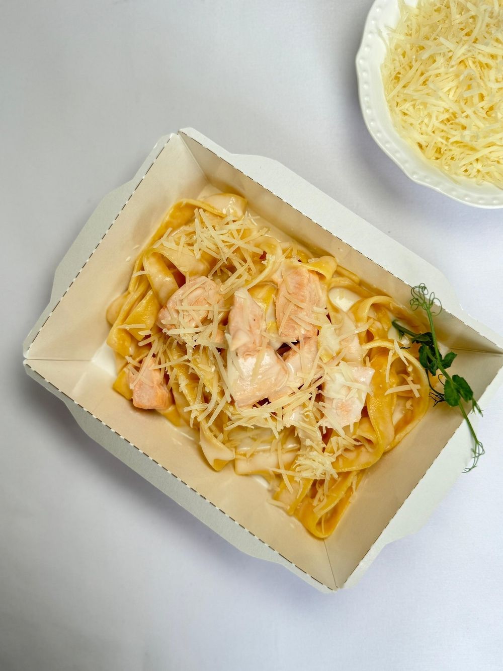 Филе семги, сливочный соус, сыр Пармезан. пенне/феттучини