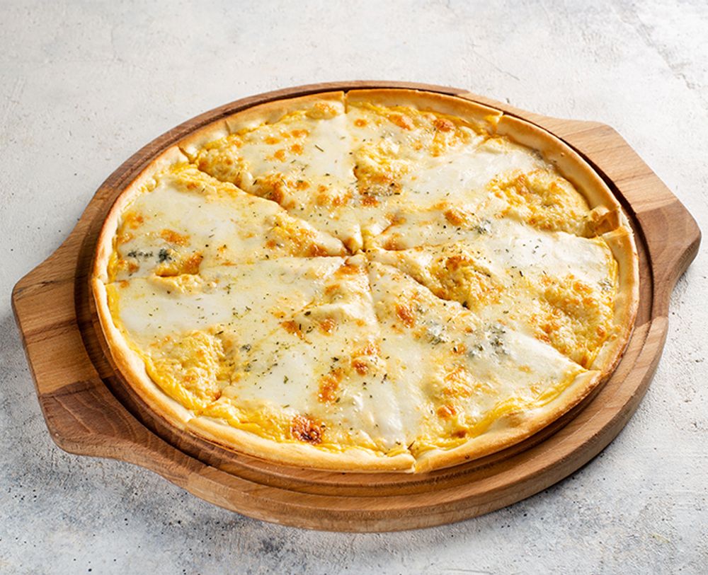 состав: тесто дрожжевое(мука,дрожжи свежие,молоко, масло растительное ,вода фильтрованная ,соль),сыр Чеддер, сыр моцарелла Буффало, сыр с плесенью, сыр моцарелла, орегано.