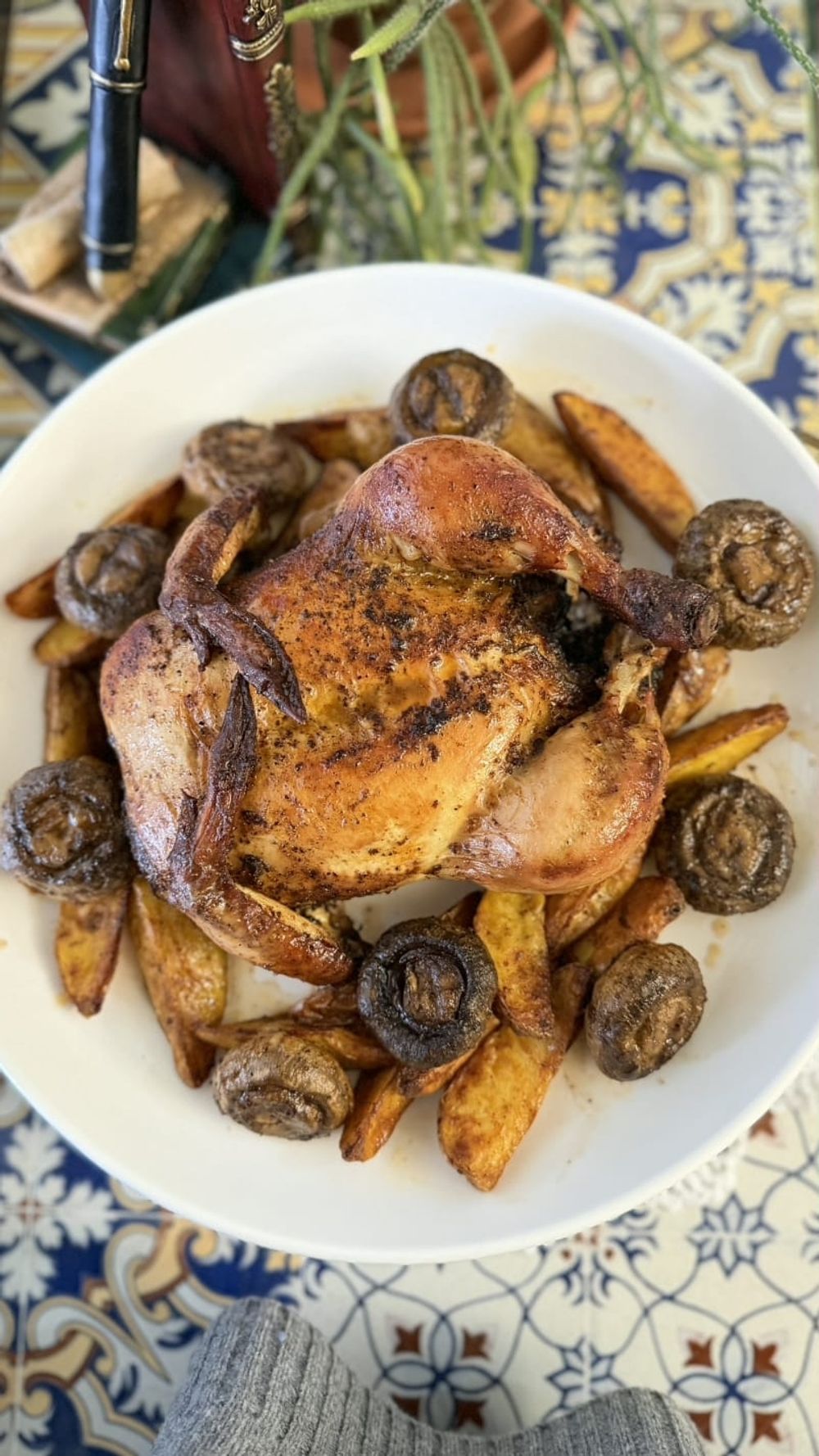 Курица в маринаде с запеченным картофелем и шампиньоны гриль