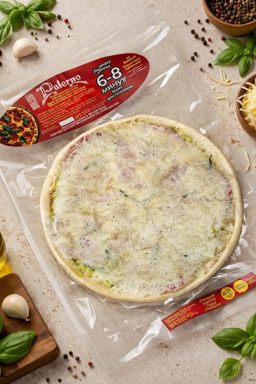 состав: тесто дрожжевое(мука,дрожжи свежие,молоко, масло растительное ,вода фильтрованная ,соль), ветчина говяжья, сыр моцарелла, орегано, лук зеленый, соус Песто с кешью