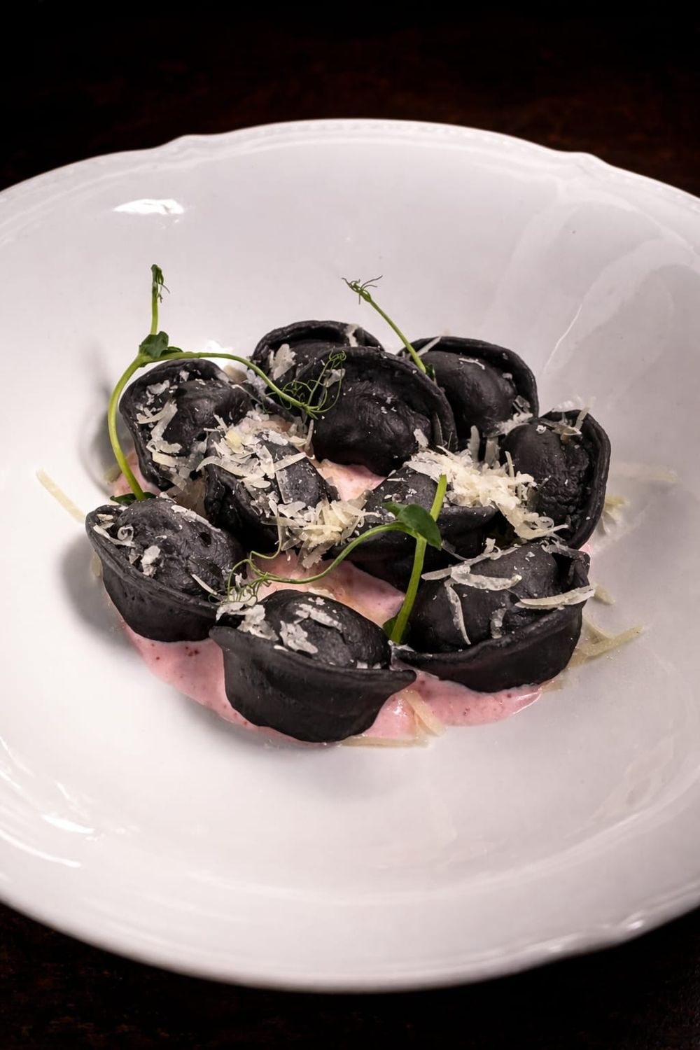 Лёгкие равиоли с судаком в сливочно-икорном соусе.